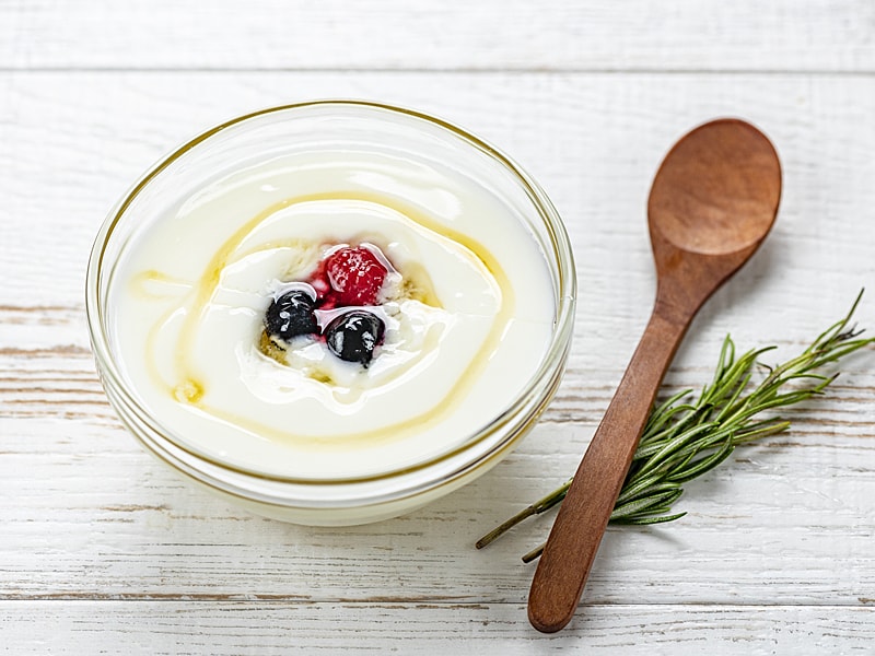朝ごはんには、プレーンヨーグルトにはちみつを。フルーツやナッツを加えると、満足感もたっぷり。