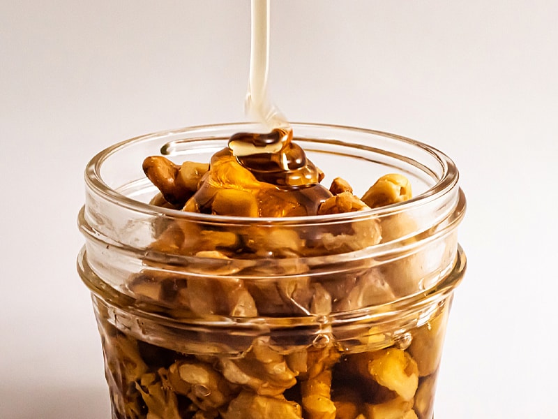 3.ナッツが浸るまで、はちみつを注ぐ